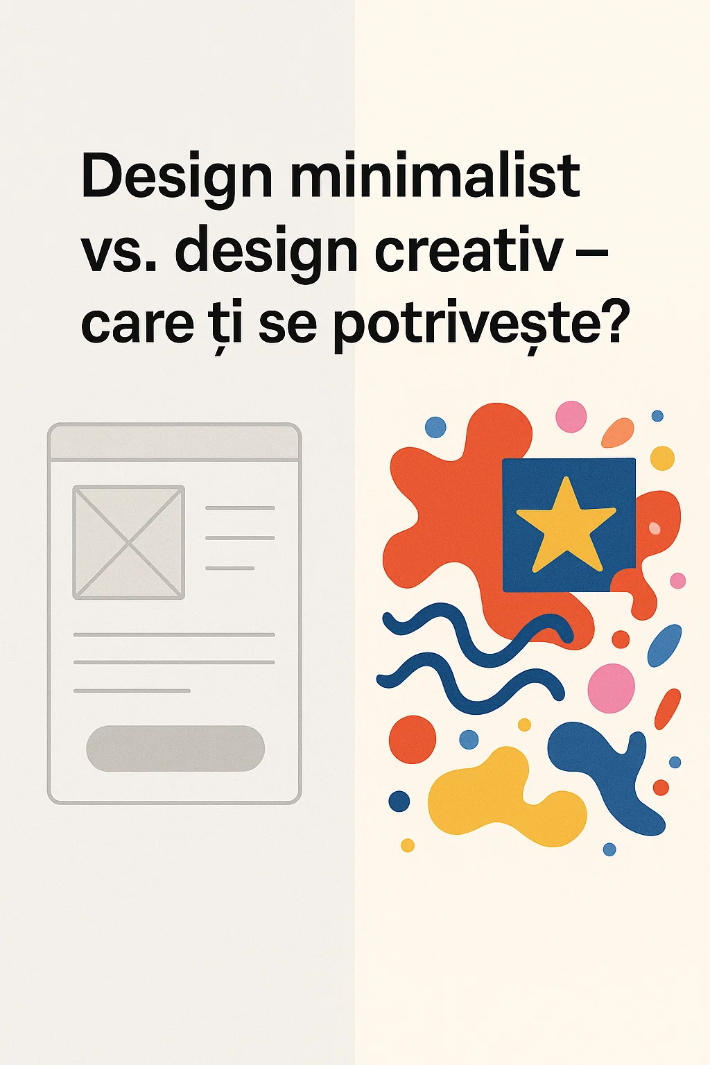 În designul web, stilul minimalist înseamnă spațiu alb, linii curate, culori puține și accent pe funcționalitate. Gândește-te la Apple – totul e aerisit, clar și calm. În schimb, un design creativ merge pe contraste puternice, fonturi îndrăznețe, elemente vizuale inedite și o personalitate distinctă. Aici vorbim de branduri care vor să șocheze puțin (în sens bun) și să iasă din tipare.
